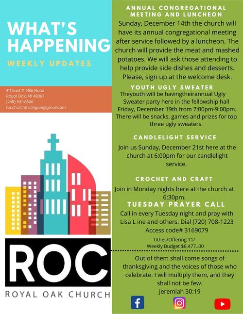 Royal Oak Church is a place where people can meet Jesus, and engage in a life-giving community, and everyone is welcome. We believe in creating a space where people can have authentic encounters with Christ, discover their gifts, and use them for God's glory. Join us for our Sunday services at 10:30 am!